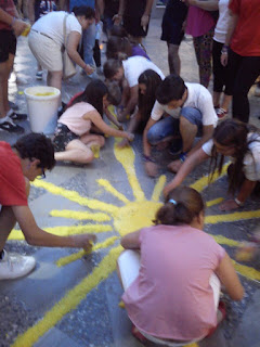 Como cada año los jóvenes de nuestra Hermandad se desplazaron hasta el centro en la tarde del sábado para participar en el montaje de alfombras previo a la procesión del Santísimo.